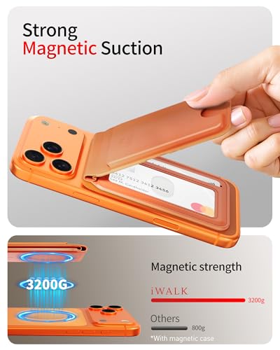 Click for More Images Powerful Magnetic Lock: The iWALK magnetic card holder features a strong magnetic lock with a 3,200g holding force, 400% stronger than the official brand. It ensures a secure attachment to your iPhone, keeping your wallet...