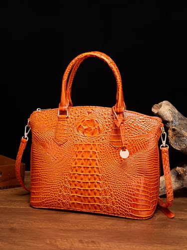Click for More Images High Quality Material: This handbag is made of high-quality, water-resistant, and scratch-resistant faux leather with a crocodile print. The shiny and textured exterior, along with the gold zippers and sturdy hardware, adds...