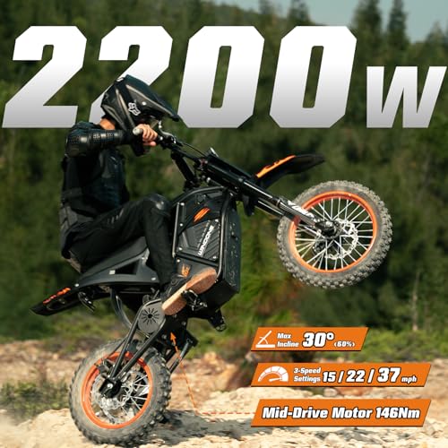 Click for More Images ?UNLEASH 2200W OF RAW POWER & SPEED? Dominate the trails with a massive 2200W peak motor that rockets the RM7 electric dirt bike to a top speed of 37 MPH, delivering an adrenaline-pumping acceleration experience. Engineered...
