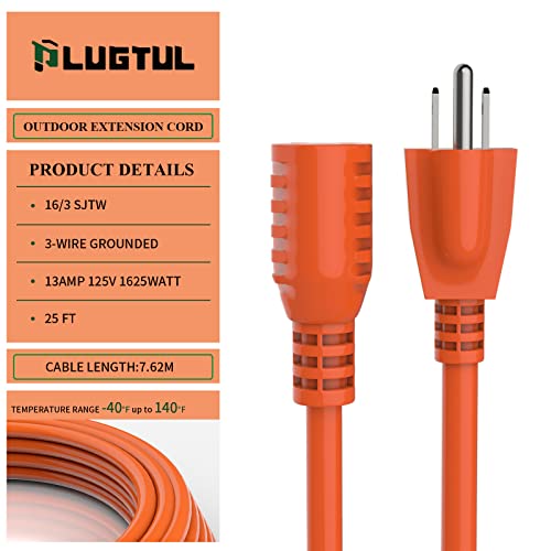 Click for More Images ??Specification? 16/3 outdoor extension cord 25ft, 16 gauge with 3 pure copper wire conductors 125V, 13Amp, 1625watts, male plug NEMA5-15P, female plug NEMA5-15R, SJTW cord, ETL listed. (The cross-sectional area of a 16 AWG...