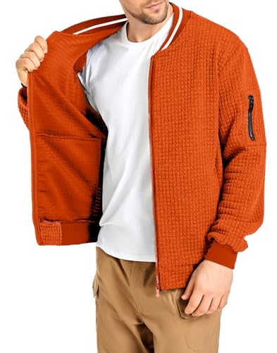 Click for More Images Featured 3D waffle pattern stylish design.Loose Fit: Designed as loose-fitting type. For a Regular Fit, please order ONE SIZE DOWN.Full zip-front closure; Two lower side functional pockets and two interior pockets for added...