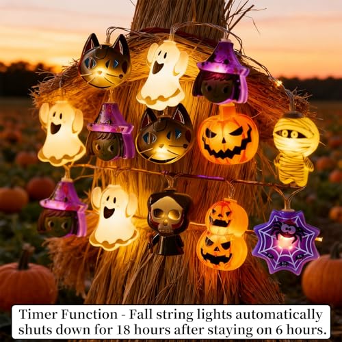 Click for More Images ? ?10FT 20LED Halloween String Lights with 8 Spooky Shapes? Elevate your Halloween ambiance with our premium Halloween string lights! This is brimming with 20 bright LED lights and features 8 unique Halloween skull lights...