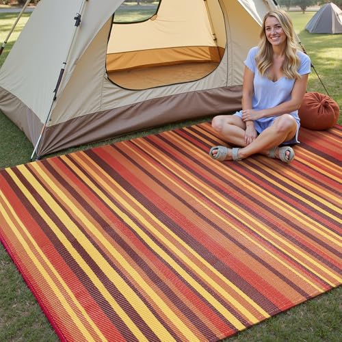 Click for More Images Stripe Design & Reversible: WondRg reversible outdoor rug is designed with orange stripe,double-sided pattern,either side can blend well with nature and your patio.Colorful stripe pattern can spruce up simple space,add...