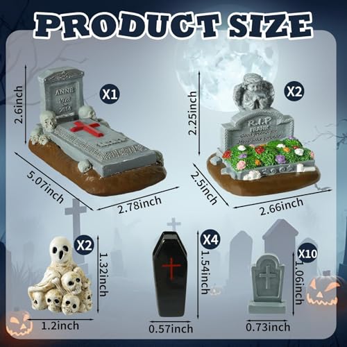 Click for More Images High-Quality Material: Halloween craft miniature tombstone. Made of high-quality resin, hand-painted finish.Great value package: This package includes 19 mini tombstones of different heights. It is very cost-effective and...