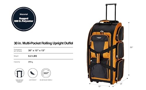 Click for More Images Extra-Large 77L Rolling Luggage Capacity: Oversized 30” rolling duffel suitcase provides approximately 77 liters of packing space, ideal for extended travel, family trips, sports travel, and bulk packingUpright Rolling...
