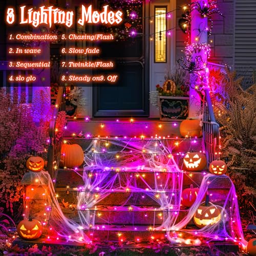 Click for More Images ?2 Packs String Lights?16.4Ft/5M * 2 Halloween string lights have a total of 32.8Ft/10M 100 LED lights. At night, they create a horrible atmosphere for you to immerse yourself in the fun of Halloween.?8 MODES?Our orange &...
