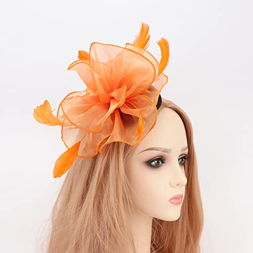 Click for More Images Material: This vintage fancy and glamour charming hat with an organza ribbon and flighty feathers that sway in the wind. Trendy style matches everything. One size fits all.You can style your hair like a bun and use it as a...