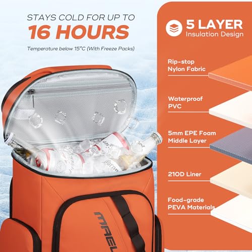 Click for More Images LEAKPROOF PICNIC BACKPACK: With its advanced seamless hot pressing technique, the liner ensures maximum leak preventionTWO COMPARTMENTS DESGIN: The large capacity picnic backpack with 2 compartments can hold up to 40 cans...