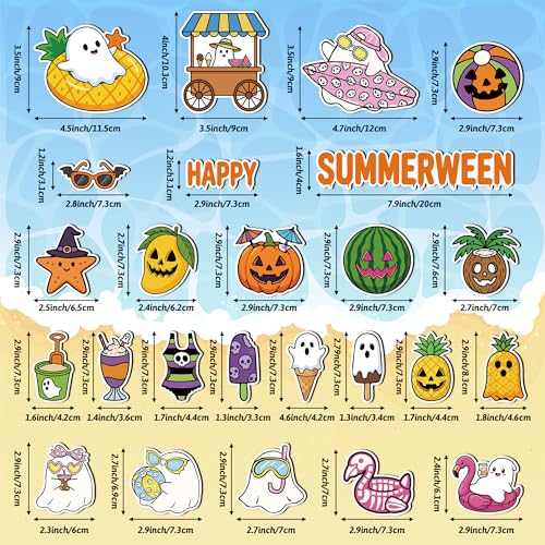 Click for More Images Package Quantity: You will receive 25 unique pieces in one value pack, featuring a different design on each magnet. This variety set includes a mix of spooky and summer tropical patterns, ranging from "Happy Summerween"...