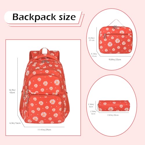 goldwheat Daisy Printed Backpacks With Lunch Pack Pencil Case 3pcs, Lightweight Water Resistant Bookbag For Middle School