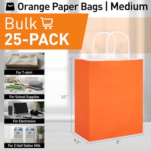 Click for More Images ? ?? Energetic Orange for Vibrant Celebrations? This set includes 25 bright orange paper gift bags that bring warmth and energy to your events. Perfect for fall festivities, Halloween, harvest parties, thanksgiving, and any...
