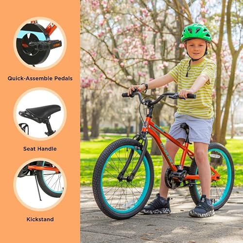 Click for More Images Sporty Kids Bike: Lightweight kid's bike features a BMX-inspired design with an integrated water bottle and kickstandLightweight & Durable: Alloy steel frame resists corrosion, withstands wear and tear from regular...