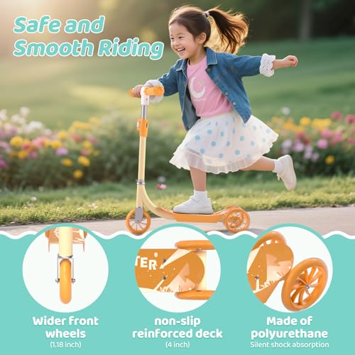 Click for More Images Safe and smooth riding: The kick scooter provides quiet and smooth riding. The front wheel is 1.18 inches wide, wider than the rear two wheels, providing your child with the necessary stability and support. The wide,...