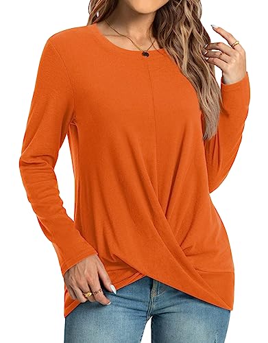 Click for More Images Features: Long sleeve, crewneck, front twist design, on the hip length, solid and floral colorsOccasions: Suitable for home, business, travel and other occasionsWashing method: Can be machine washed or hand washed, not easy...