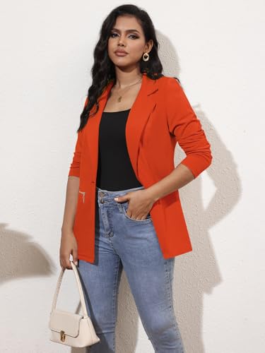 Click for More Images ?Women Lapel Collar Casual Work Fitting and Stretchy Blazers Jacket. No liner or shoulder pads?Classic Design: Open front with a single front button, long sleeve, solid color/plain, fashion available gold zipper pockets, a...