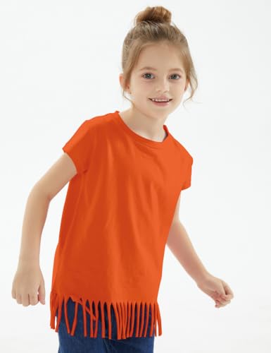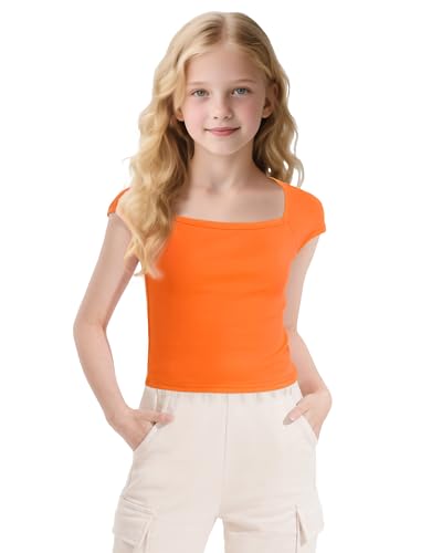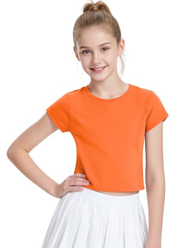 Imily Bela Girls Short Cap Sleeve T Shirts Kids Crew Neck Casual Loose Summer Tops 5-14 Years Orange