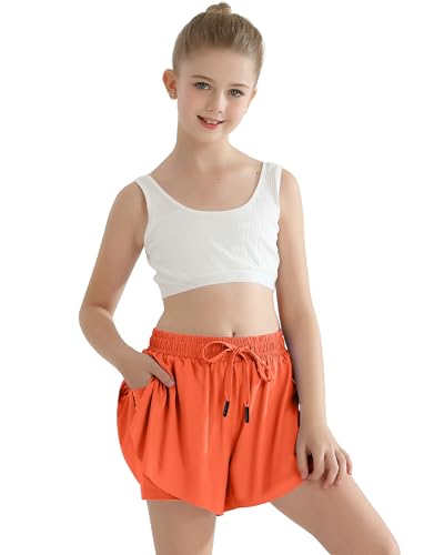 Click for More Images Premium Material: Our girls flowy shorts are made of lightweight and breathable material, quick-dry and comfy. Keeping you cool feeling in any sport, perfect girls flowy athletic shorts.2 in 1 Design: Girls butterfly...