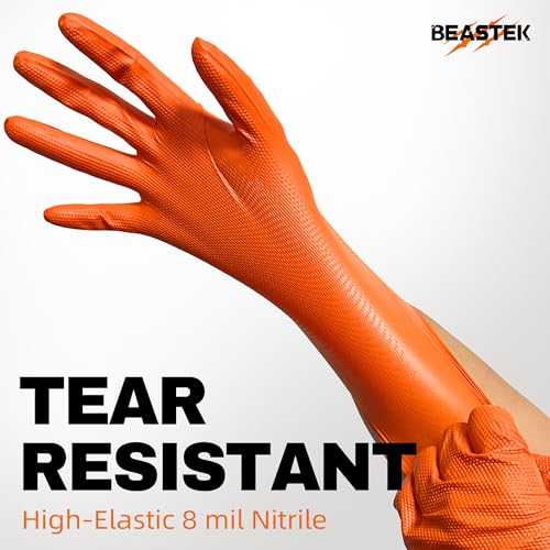 Click for More Images LATEX & POWDER FREE: Orange nitrile gloves designed for a natural rubber–like fit; 3x more puncture resistant than latex gloves and safe for those with latex allergies.CHEMICAL RESISTANT: 8 mil heavy duty nitrile gloves...