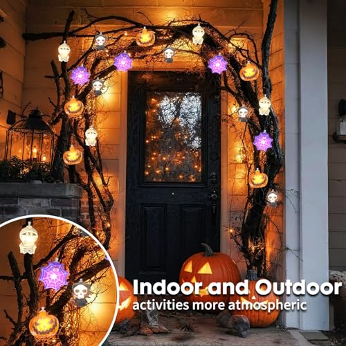 Click for More Images Halloween Decoration Lights: Our Halloween light string total length 118 inch (3 meter), each light string has 20PCS LED lights in different designed. Pumpkin, Mummy, Skull, Spider, Ghost, Witch, Black Cat, turn any space...