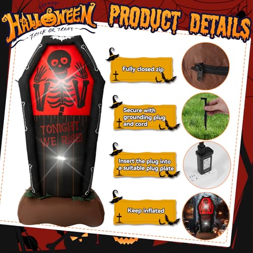 Click for More Images ?Built-in LED lights? The SHDEJTG Inflatable Coffin Halloween inflatable decoration comes with bright built-in LED lights. The built-in bright LED light is perfect for Halloween party nights. It's bright enough that even at...