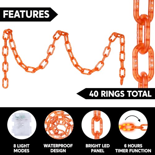 Click for More Images Halloween Lights Made for Impact: Light orange LED string lights create a striking, eerie glow, ideal for halloween chains or plastic chains halloween setups. Perfect for doors, trees, or haunted houses.8Ft Long & Versatile:...