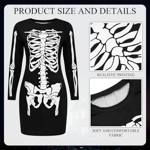 Click for More Images Complete Costume Set for Effortless Styling: the package includes 1 skeleton long-sleeved dress, 1 silver-gray gradient wig, 1 pair of skeleton stockings; The quantity is sufficient, and the design is novel, allowing you to...