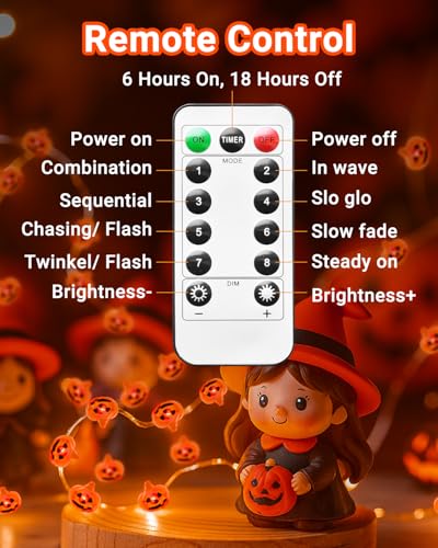 Click for More Images 8 Lighting Modes Halloween Lights: These mini Halloween lights feature 8 different lighting modes, including Combination, In waves, Sequential, Slow Glow, Chasing/Flash, Slow fade, Twinkle/Flash, and Steady on. Just press...
