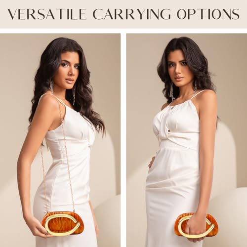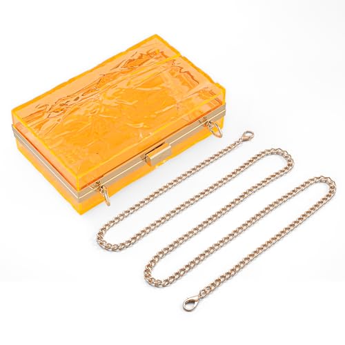 Click for More Images Material:Premium Acrylic, made of solid acrylic and gel lining ;Size:7.1 inch x 4.3 inch x 2 inch.The golden button on the top make this bag easy to open and close.Including two pairs of chain shoulder straps, a pair of ring...