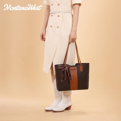 Click for More Images Montana West vintage large tote bag is crafted out of premium vegan leather, accommodates daily essentials with a spacious and organized space, and a magnetic to secure it shut. The top handle handbag features a double carry...