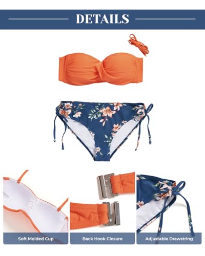 Click for More Images Orange Flower Strapless Bikini Set: This chic top features a non-removable soft padded bra and a metal back hook,perfect for showcasing your summer glow and providing a flattering silhouette.Two Piece Swimsuit: The low-rise...
