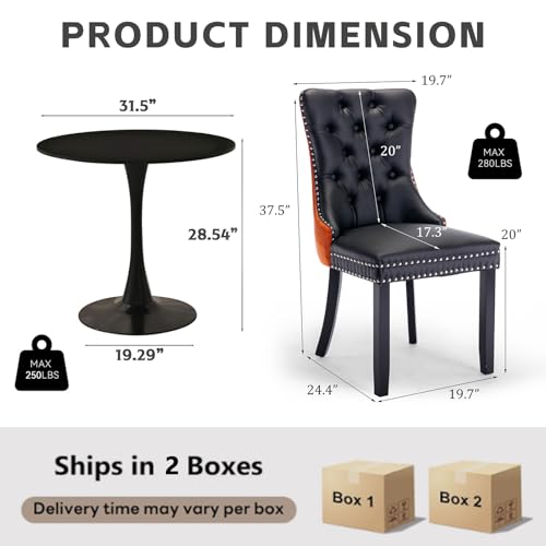 Click for More Images ?Small Round Dining Table Set for 2?:Our 3 piece dining table set, includes a 31.5-inch diameter round table and 2 velvet upholstered dining chairs. Regarding the color scheme of the dining table, we chose two colors: black...