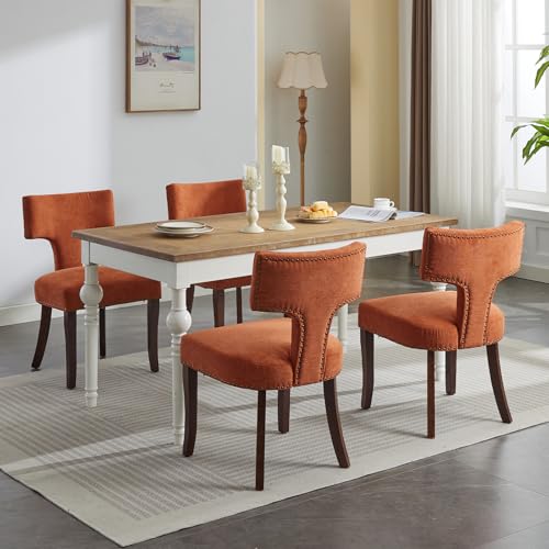 Click for More Images ?Comfort Ergonomic Design?With 18" High curved back, upholstered dining chairs set of 4 offer enough support for back, 18" wide seat with 3" thick padding for long hours of comfortable sitting experience.?Solid...