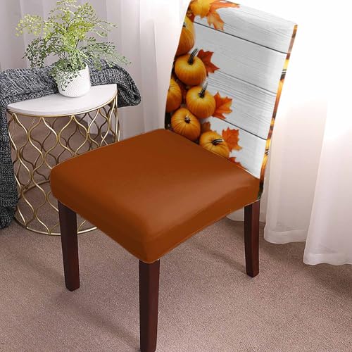Click for More Images Material: Fall dining chair covers are made of polyester fiber with excellent elasticity, long-lasting durability, comfortable and not wrinkle.The same Thanksgiving elements is printed on both sides of the dining chair...