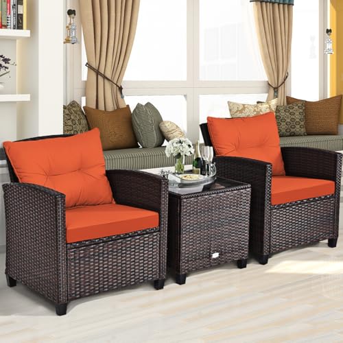 Click for More Images Sturdy Steel Frame & Premium Rattan: Constructed from rust-resistant steel frame and PE rattan wicker, our 3pcs set is more durable and weather-resistant than traditional wicker making. Besides, outstanding craftsmanship of...
