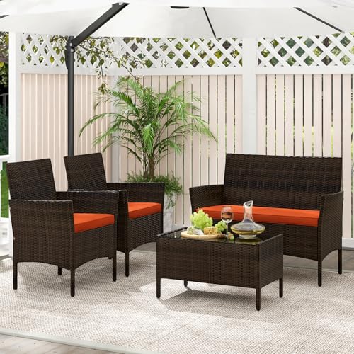 Click for More Images ?Sturdy & Durable PE Rattan?Constructed from high-quality PE rattan, this 4-piece patio conversation set is weather-resistant and durable for outdoor use. The sturdy metal frame and reinforced cross structure ensure superior...