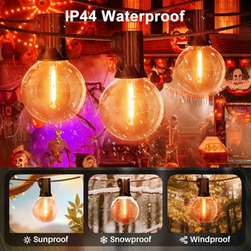 Click for More Images LAMPHOME G40 LED Halloween String Lights: 26ft G40 LED globe string lights come with 12 orange LED lights and 1 spare bulbs. G40 LED patio string lights can be used with any E12 socket base light string. This outdoor string...