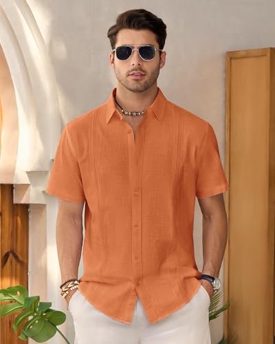 Click for More Images Classic Embroidered Guayabera Shirt for Men – Designed with traditional front embroidery and pleats, this Cuban-style shirt delivers timeless style with a relaxed, comfortable fit.Breathable Linen-Cotton Blend – Crafted...