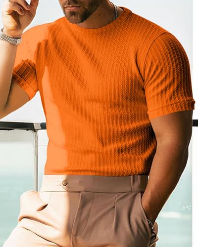 Click for More Images Stylish Design - Mens t-shirts feature a crewneck, short sleeves,a unique ribbed texture,and a slim fit. The mens shirts gently hugs the torso, flattering the male physique.Comfort Material - Men's t-shirts are made of...