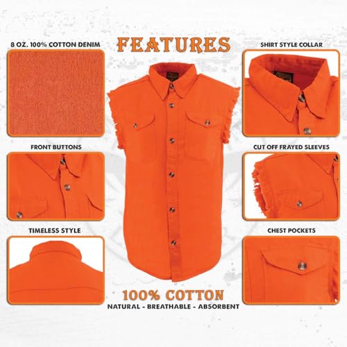 Milwaukee Leather DM1003 Men’s Orange Lightweight Denim Shirt with Sleeveless Frayed Cut Off – Large