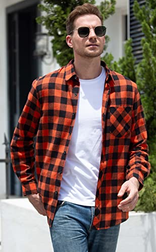 Click for More Images HIGH QUALITY FLANNEL FABRIC: This men's flannel hoodie shirt made of 60% Polyester+40% Rayon, soft and skin-friendly, warm and comfortable, bring you warm enough in the Fall & Winter SeasonFASHION DESIGN: Men's plaid shirt,...