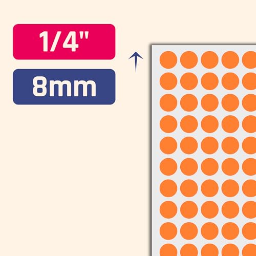 Click for More Images Color: OrangeSelf-Adhesive. Sticks great on paper, wood, plastic, clothing and most flat surfaces400 stickers per sheet. Total of 15 sheets.Pack of 6000 stickersDiameter: 1/4 inch (8 mm) More Information...