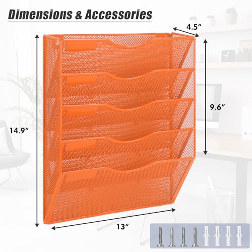 Click for More Images Stable Structure: Elegant mesh metal construction with powder coat finish file pocket that take full advantage of your vertical space and keep your desk clean5 Pockets: The wall file organizer comes with mounting screws that...