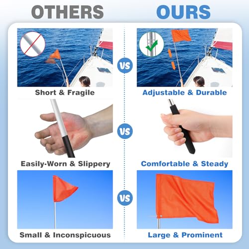 Click for More Images Retractable Stainless Flag Pole: Our boat safety flag kit comes with a retractable handheld flagpole made of durable stainless steel. It extends from 10 to 47.2 inches and requires no complicated installation, making it easy...