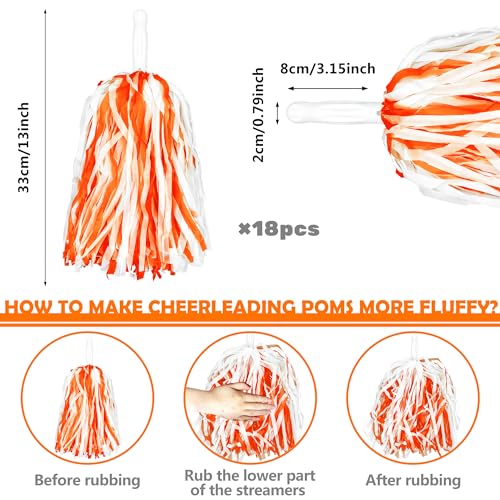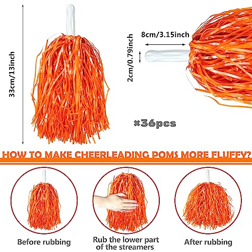 Click for More Images SIZE: Total length 12.99inch,handle length 3.15inch,streamers length 9.84inch.PACKAGE: You'll get 36pcs orange pom poms cheerleading.WIDELY USE: These cheerleading pom poms are not only for cheerleading but also for sport...