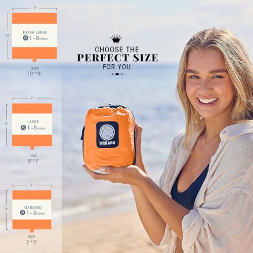 Click for More Images ? OVERSIZED AND COMPACT-10‘x9'(300cmX280cm) over 30% bigger than competing beach / picnic blanket, will comfortably fit 7 person, only weights 14 oz - the ultimate beach essential for family outings. . Come with 6 metal...