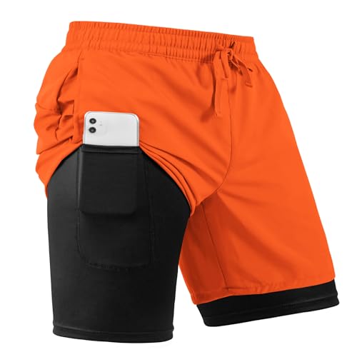 Click for More Images [2 in 1 design & High-quality fabric]: this product has two layers, using a mixture of polyester and spandex fabric, the inner lining layer fits snugly and is breathable, sweat-absorbent and quick-drying, lightweight and...