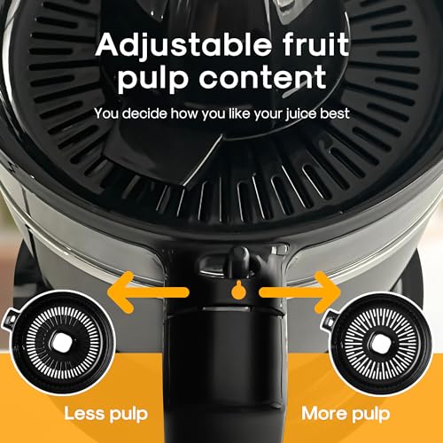 Click for More Images ? HIGHEST JUICE YIELD : Orange Juicer with high yield thanks to the 2-cone pressing process & high flexibility thanks to the adjustable pulp sieve - The perfect orange juice maker & lemonade maker for your home? DOUBEL...