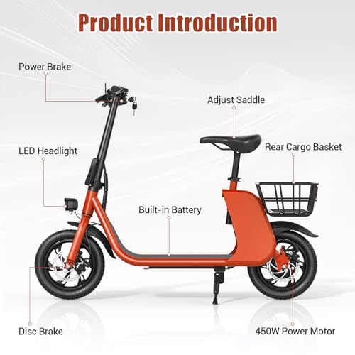 Click for More Images Powerful Electric Scooter: Equipped with a robust 450W brushless motor, this electric scooter effortlessly reaches 15.5 MPH and conquers daily commutes, park trails, or shopping trips. The 36V 8Ah lithium battery delivers a...