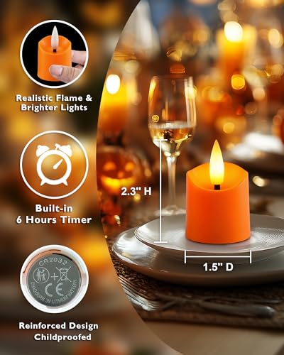 Click for More Images [ Orange Flame Candles ] - the flameless Tea Lights have orange base (clear wick), and emit orange (similar to warm yellow) flickering flame, great for party, thanksgiving and Halloween decoration[ 6H Timer ] – the candles...