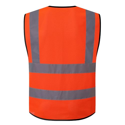 Click for More Images BREATHABLE MESH: The reflective safety vest is made in 100.00% polyester mesh material. Hi vis safety vest is lightweight, comfortable, breathable, easy to carry, machine washable in cold water, and quick-drying.HIGH...
